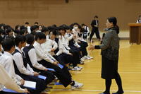 毎年講師をお願いしている助産師の先生にお話をしていただきました。思春期まっただ中の生徒たちに対して、豊富な経験とこれまで蓄積された知識をもとに、親でも先生でもない切り口で、生徒たちにとても大切なお話を聞かせてくださいました。2年生の皆さん、今日のお話をいつも心のどこかにもっていて、これからますます充実した生活を送ってください。