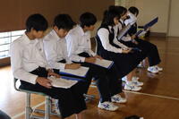 ○2年生では26日(水)、27日(木)に行われる第3回定期テストに向けて学習計画を作成しました。各教科のワークなどの課題を見ながら、一人ひとりが立てた目標を達成するために真剣に取り組んでいました。課題を終えるのがテスト勉強ではありません。課題に取り組んだ中で、できなかった問題やその単元を「復習してできるようにする」ことがテスト勉強です。課題を早めに終わらせ、真の「テスト勉強」に取り組めるようにしてください。