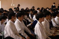 今日の4時間目は、全校生徒が体育館に集まり、決起会を行いました。校長の話のあと、体育科、応援団長から説明やあいさつがありました。またイメージづくりのために、昨年度の体育祭をまとめたショート動画も見ました。