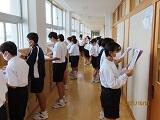 10月14日(木)のホームページで、私から後期始業式の中で、・元気なあいさつ、・黙道清掃、・下駄箱のくつをそろえる、という話をしたことをお知らせしましたが、その後、各学級担任や学年の先生も生徒たちに話をし、あいさつの声も、掃除の様子も、そして下駄箱のくつもこれまで以上に生徒たちはがんばっています。また、1年生は廊下掲示を作成して、学年をあげて取り組んでいます。