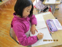 1年生の国語では、「ひらがな」を学習しました。口の形に注意しながら「あいうえお」から始まる言葉を何度も読みました。みんなの前で一人ずつ発表する姿が微笑ましく思いました。
