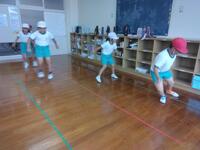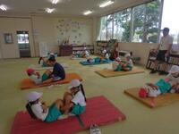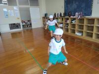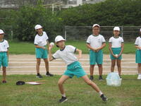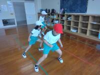 2時間目の途中から雨が降り始めたため、体育館で「スポーツタイム」を行いました。全校で体を動かすのは久しぶりです。アザラシ、いぬ、うさぎの縦割りチーム対抗戦で「ボール回しリレー」を行いました。アザラシチームは、頭の上から、股の下からと、ボールをスムーズに受け渡し、三連勝することができました。