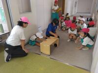 1年生は職員室の入り方を学んでいました。「しつれいします」よく言えました。