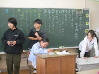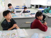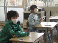 講師の香取美智子先生と菅谷和恵先生をお招きして、4・5年生は書初めの練習をしました。4年生は「初もうで」、5年生は「美しい空」を書きました。全体や一人一人に対し、的確な助言をしてくださったおかげで、東っ子はぐんぐん上達しました!香取先生、菅谷先生、どうもありがとうございました。