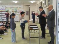 今朝は賞状伝達を行いました。書初め展(書星会賞)、技術・家庭(研究部長賞、優良)、ニチバン巻き芯エコプロジェクト(4年生感謝状)が対象でした。多くの作品から選ばれた皆さん、おめでとうございました。