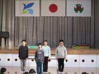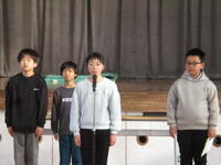 厳粛な雰囲気の中、令和8年度児童会役員認証式が行われました。新役員の4名の皆さん、承認おめでとうございます。学校教育目標である「気付き、考え、行動する児童の育成」を挨拶の内容に入れ、力強く決意表明をしてくれました。ぜひ、小見川東小のために頑張ってください。校長先生からは、3つの習慣(①東小の良い点をさがす②東小の改善点をさがす③②を良くするために、誰にどのように動いてもらうか考える)を付けるようにと、エールを送りました。また、旧役員の皆さんも今までありがとうございました。今年度の経験を来年度に生かしてください。