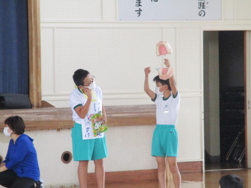 むし歯を予防するポスター、健康な歯の持ち主をみんなに紹介し、表彰することができました。