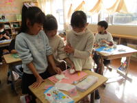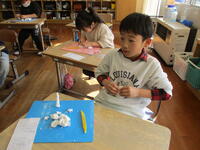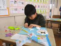 低学年の授業では、作品作りを頑張っていました。東っ子たちは工作が大好きで、色の使い方も上手です。完成が楽しみです。