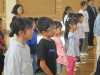 本日は前期終業式が行われました。受賞報告の後、1年生と4年生の代表児童が半年間の頑張りについて述べました。とても立派な発表でした。校長先生からは、「三連休は通知表を参考にしながら前期をよく振り返り、後期に生かしてください」という話をしました。42名の東っ子の皆さん、気持ち新たに後期をスタートさせていきましょう。