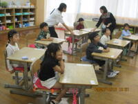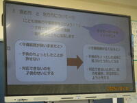 午後からは入前児就学時検査を行いました。検査中の児童を待っている保護者を対象に、千葉県総合教育センターの市原純子先生から「子どもと親のコミュニケーション」について、講演をいただきました。講演中は温かい雰囲気の中、笑顔で保護者同士が意見交換をする場面がありました。つい子どもに対して発してしまうマイナス言葉をプラス言葉に変換することで、子どもを認めることができることも教えていただきました。市原先生が最後におっしゃっていた、「笑顔で子どもの前に立つことが子どもの安心感につながる」ことを心がけていきたいと思いました。