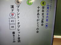 明日は学年末PTAが実施されます。各学級では授業参観の準備を進めていました。天候が心配ですが、お子様の活躍と一年間の成長をご覧なっていただければと考えております。(全体会の会場を、体育館から日新ホールに変更しました)
