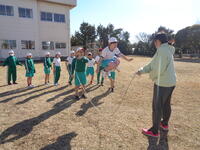 今日の読み聞かせは、5年生が2・4年生に紙芝居を披露しました。どちらも楽しいお話で、東っ子は笑顔で聴いていました。5年生の皆さんはご苦労様でした。スポーツタイムでは長縄跳びを行いました。1年生は3分間で25回も跳ぶことができました。前回より5回も増えたので、よく頑張ったと思います。4・5年生のように100回を目指していきましょう。
