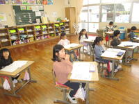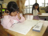 主に聞き取りのテストを振り返りました。解説をよく聴いていました。
