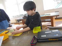 1年生と5年生の図画工作は、想像力(創造力)が養われる授業でした。1年生は「つくってへんしん」です。変身したいものを考え、作り方の工夫や制作後の楽しみ方が求められます。5年生は前時同様、彫刻刀を使って「物語の木版画」を制作し、本日から粘土を使って人や生き物の動きを作りました。どちらも2時間続きの授業ですが、東っ子は休憩時間も忘れて制作に取り組んでいました。