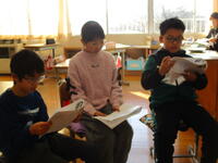 4年生は「読み聞かせ」の練習をしました。2チームに分かれ、別々の物語を朗読します。担当のセリフを感情を込めて読む姿は、まるで声優さんのようでした。10日(水)の朝、1・2年生の教室で読み聞かせを行います。大成功間違いなしですね。