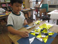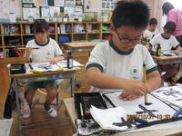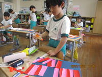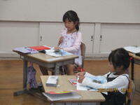 4年生の体育では、キャッチバレーボールの後、一人一人が反省点を言葉で述べていました。言葉で伝え合いながら授業を振り返るのは、教育効果が高まります。