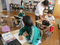 5年生は分数を学習しました。分数の加減、約分・通分を復習した後に、「〇分は△時間?」を考えました。時計の一周を60等分、12等分、4等分などしながら一人一人の考え方を比較・検討し、答えや約分について理解を深めることができました。ICTの便利さを実感できた点も良かったです。