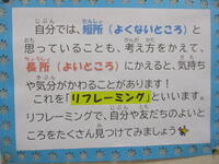 保健室の廊下掲示です。長所と短所は表裏一体!