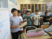 本校では、「読書祭り」と称して、読書の啓発活動を行っています。今朝、環境委員会の児童が1年生と5年生の教室でおすすめの本の紹介しました。きっと「読んでみたい!」と思ったことでしょう。14日(金)は2年生と4年生の教室に訪問します。