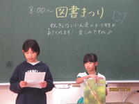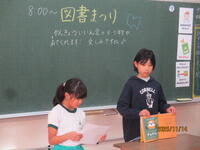 一昨日に引き続き、本日も「図書祭り」を行いました。環境委員会が2年生と4年生の教室で本を紹介しました。休み時間には、紹介された本を手にして読書する姿も見られました。とても嬉しいことです。環境委員会の皆さん、どうもありがとうございました。