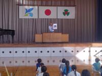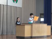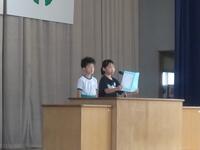 本日から後期がスタートしました。始業式では、2年生と5年生の児童が後期に向けての決意を述べてくれました。立派な発表をありがとうございました。校長先生からは前期の努力目標である「2つのあ」(①挨拶、②安全・安心)に(③頭を使う、④あきらめない)を加え、「4つのあ」を頑張るように話しました。