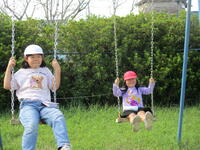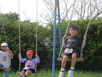お昼休み、東っ子はブランコやドッジボールなどで楽しんでいました。