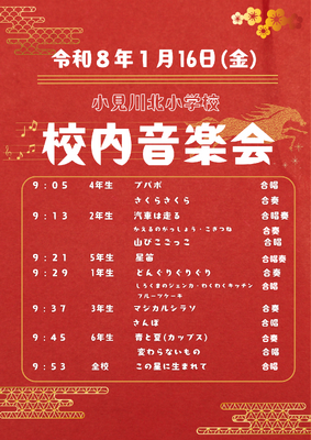 【音楽祭について】1月16日(金)の演奏時刻の予定をお伝えします。