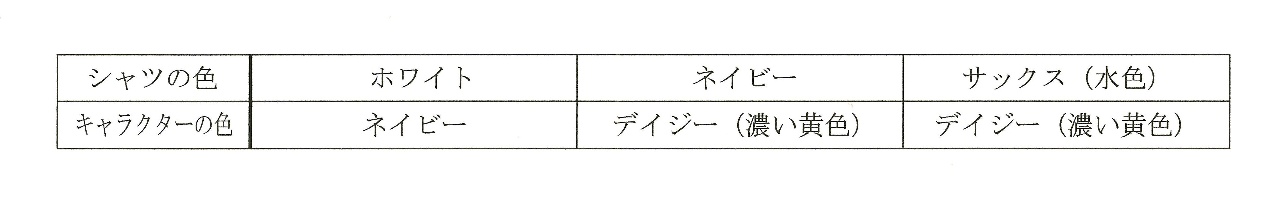 ★Tシャツカラーとキャラクタの色の組み合わせ