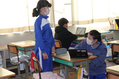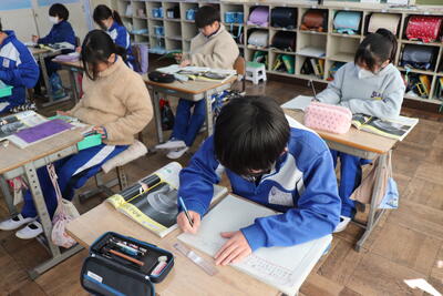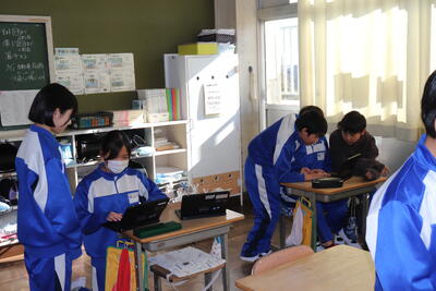 総合的な学習の時間では、「卒業プロジェクト」に取り組んでいました。数名ずつに分かれて、様々な催しや企画を考えて担任の先生と相談しながらまとめていました。卒業式まで2ケ月をきり、取り組むことが具体的にまとまってきました。(詳細は卒業プロジェクト情報へ)