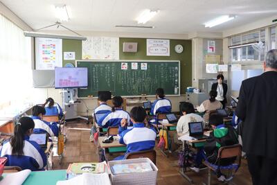 道徳の授業では、「ロレンゾの手紙」というお話を教材に「友情」について話し合いました。罪を犯したかもしれないロレンゾとその友人との心の葛藤について、児童たちはタブレットを使って自分の意見をまとめ発表したり、ふきだしくんで他の人の意見を聞いたりしながら考えを深めていました。
