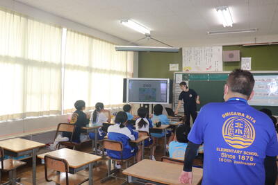 北海道の漁業について学習しました。4つのグループに分かれて調べた内容をホワイトボードに書き込み、グループ毎に発表しました。わからないことや疑問は質問してもらう等、聞き方や発表の仕方がとてもよかったです。