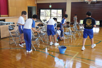 昇降口では、下駄箱を一生懸命掃除している姿が見られました。他の場所でも清掃にしっかりと取り組んでいました。現在大学に在学中の本校卒業生が、本日と明日の2日間、ボランティア実習として保健室の先生のお手伝いを中心に活動されています。