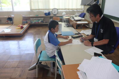 1年生の水遊びを手伝いました。風があり日陰で行ったので、暑さの心配はありませんでした。2年生も1年生の時のことを思い出して楽しく交流することができてよかったです。