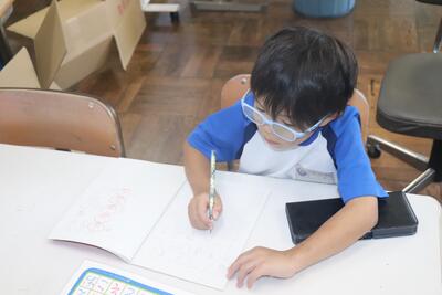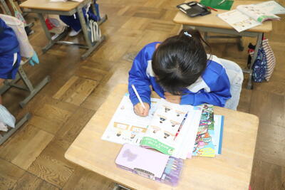 ひらがなの書き取りを行いました。全員が集中して一文字一文字丁寧に文字を書いていました。この積み重ねが、形の整った文字を書く力につながることを改めて実感しました。