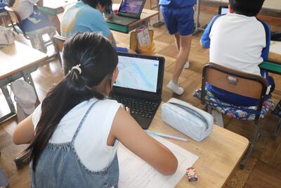 社会の授業では、香取市の文化についてタブレットを使いながら調べ学習を進めていました。香取市の「(側高神社の)ひげなで祭」や「(香取神宮の)神幸祭」など、まだまだ知らなかったことが分かり、意欲的に取り組んでいました。