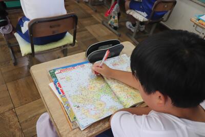 日本の47都道府県の名前を白地図からよみとってプリントに書き込みました。覚えている児童は、ほとんど全部書き込むことができました。今回、学習したことは、夏休み以降にもかくにんしていくそうです。復習をしっかりとしておきしましょう。