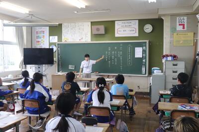 国語の授業では、「大造じいさんとガン」の続きを行いました。物語の中の具体的な事象よりおじいさんと残雪それぞれの心情について、児童が心に残ったことをまとめていました。一人一人、感じ方や伝わり方の違いが面白いと思いました。