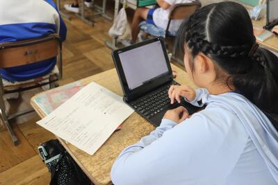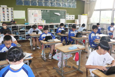 国語の授業では、授業を始まる前にタイピングを行っていました。毎時間の積み重ねはすごいもので、とても早く正確に文字を打ち込む児童がたくさんいました。今後、作文などタブレットを使って作成する機会も増えると思いますので、頑張ってください。