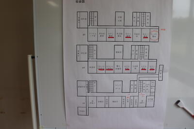 社会の授業では、教科担任の先生と一緒に校内に設置されている防災設備について学習しました。校内図を持って各階にある消火栓や消火器、煙感知器などの設置個所を記入していました。実際に教室を離れて活動しながら学んでいたのでとても意欲的でした。