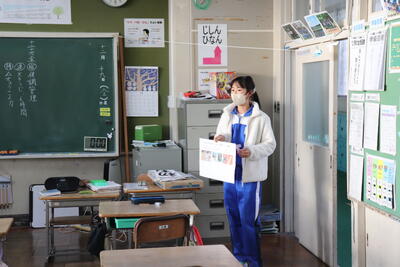 体育の授業では、1年生と合同でスポーツテストの種目(50m走とボールスロー)に取り組みました。寒さに負けずあいさつも競技も元気よく取り組んでいました。途中、近くの保育園の園児が散歩をしており、小学生の授業の見学をして応援してくれました。(ありがたいです!)