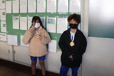 ※表彰式に欠席だったため、先日のマラソン大会で1年生と5年生で1位となった児童の伝達を校長室で行いました。