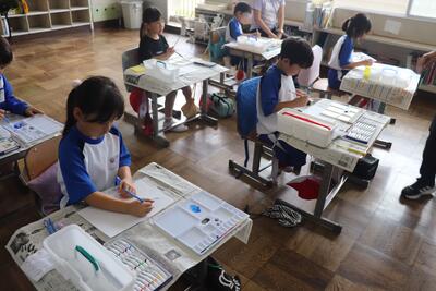 生活科では、地域のまち探検で訪問した場所のまとめを行っていました。「新聞形式」や「すごろく形式」など様々な形で楽しそうにまとめていました。完成したら発表したり、実際にすごろくをしたりしながら地域について、より深く学ぶことでしょう。