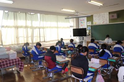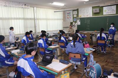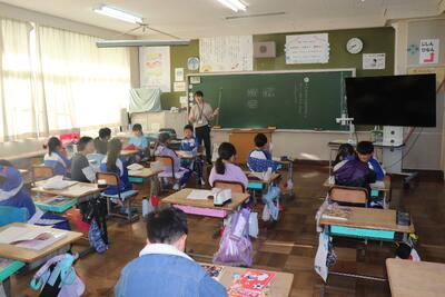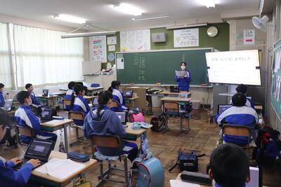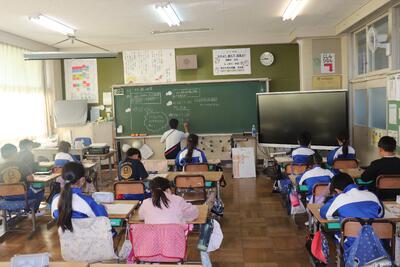 国語の授業では、「白神山地」について学習しました。段落ごとにグループやペアで朗読を行いました。順番で全員が朗読を行いました。大きな声ですらすらと読んでいました。算数の授業では、小数が混ざった数の平均値の復習を行い、練習問題に取り組みました。