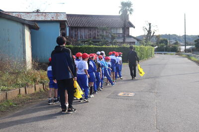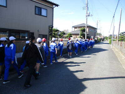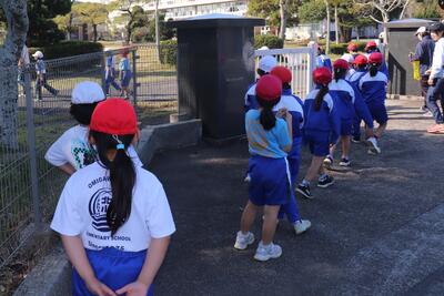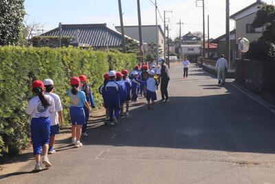 来週の試走に向けて、体育の時間に低学年、中学年、高学年ごとにマラソンコースの下見に徒歩で出かけました。安全面に気を付けながら先生の指示に従って実際のコースを歩きながら確認しました。初めて参加する1年生や距離が伸びた学年は、特に集中して先生の説明を聞いていました。体調を整えて来週の試走頑張ってほしいと思います。