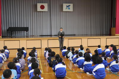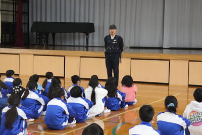 何時も地域の安全を守ってくださっている駐在所へ、2年生が2回に分けて校外学習で訪問しました。お仕事の内容を質問し、色々なことを教えていただきました。児童は、警察官の方の帽子や警棒等の装備品に関心が高く、実際に身に付けたり、手に取ったりしながら見せてもらい、興味をもって学ぶ事ができてとてもうれしそうでした。お忙しい中、ご対応していただき、ありがとうございました。