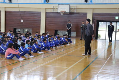 本日、千葉県警察香取警察署の生活安全課と駐在所の方々にご協力いただき、不審者対応訓練を行いました。ここ数年、登下校時の声掛け対応訓練を行っていましたが、数年ぶりに校舎内に不審者(学校職員が演じました)が侵入した場合の対応の仕方を職員と児童それぞれが確認させていただきました。講評で校長先生や警察の方からからは、「いかのおすし」の確認と、「普段から大きな声であいさつすること」や「来校者には必ず名札をつけてもらうこと」、「最後は自分の身は自分で守る意識について」の話がありました。今回ご指導いただいたことを生かし、安心安全な学校づくりに生かしたいと思います。ありがとうございました。