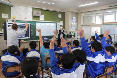 4年生の社会の授業では、昨年度と同様にパワーポイントを使って発表します。そこで昨年度、行った5年生に実際に発表をしてもらいました。(5年生は若鯉タイム)5年生の丁寧な発表を聞いて具体的に発表するイメージがつかめてよかったです。