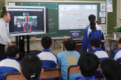 本日、外国語の授業の時に、前もって手紙で交流していた、オーストラリアのベルローズ校と交流をしました。手紙の相手にこちらは英語で、あちらは日本語で質問をしました。同じものが好きだったり、興味をもっていたりしたときは、お互いに嬉しそうでした。短い時間でも交流がもててとてもよい経験になったようです。ベルローズ校の皆さんありがとうございました。