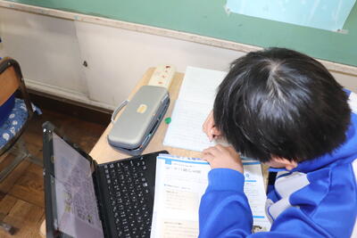 国語の授業では、授業のはじめに各自でタブレットを用意して、タイピングを行いました。小学校ではまず、文字を書くことが大事になります。そして、今後は作文や発表資料等を作る際に、タブレットのワードやパワーポイント等を使って文字を打ち込む技能が必要になるので、継続してタイピングに取り組んでいます。
