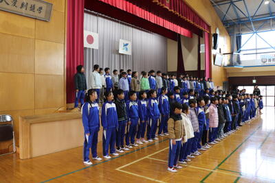 本日、校内書き初め大会を実施しました。1・2年生は教室で硬筆を、3年生から6年生までは体育館で毛筆を行いました。はじめに担当の先生から、「早く終わらせるのではなく、心をそろえることを大切にしてほしい」というお話がありました。児童は一画一画丁寧に文字を書いていました。この後、席書会に出品したり、16日~23日の間で若鯉広場に展示されたりする予定です。完成した作品を見るのを楽しみにしています。